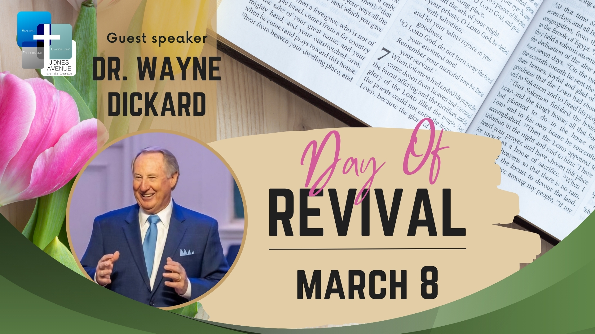 We invite you to join in this special day of revival as Dr. Wayne Dickard brings special messages. Service times: 8:25am / 10:30am / 6:00pm.